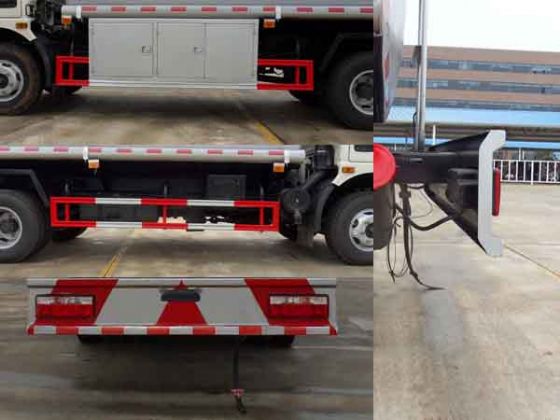 | 整車說明: | 1、運(yùn)輸介質(zhì):汽油,密度:700千克/立方米,類項(xiàng)號(hào):3;罐體有效容積:10.5立方米;罐體外形尺寸(長(zhǎng)×長(zhǎng)軸×短軸)(mm):①選裝單排駕駛室,4900(加油機(jī)倉(cāng)長(zhǎng)800)×2050×1500(加油機(jī)裝在罐體前部);②選裝單排駕駛室,4900×2050×1400(加油機(jī)裝在車架左側(cè)或右側(cè));③選裝排半駕駛室4600×2050×1500(加油機(jī)裝在車架左側(cè)或右側(cè))。2、側(cè)防護(hù)采用冷彎型鋼/Q235,螺栓連接。后防護(hù)采用冷彎型鋼/Q235,焊接,截面高350mm,截面寬50mm,下邊緣離地高550mm。加油機(jī)型號(hào)及生產(chǎn)企業(yè):HS18012B/托肯恒山科技(廣州)有限公司,SKES-1112/上海伯萊機(jī)械有限公司,SK20QF-111A、SK20QF-222A/鄭州三金石油設(shè)備制造有限公司,C220D1110F/正星科技有限公司。3、隨底盤選裝排半駕駛室及駕駛室外觀。該車安裝具有衛(wèi)星定位功能的行駛記錄儀;ABS型號(hào)/廠家:36BG13-30010/東風(fēng)電子科技股份有限公司汽車制動(dòng)系統(tǒng)公司。該車僅用CY4102-CE4B, CY4102-CE4C ,YC4E140-42, YN38CRD1型發(fā)動(dòng)機(jī)。發(fā)動(dòng)機(jī)與油耗值(L/100Km)對(duì)應(yīng)關(guān)系為:CY4102-CE4B/20.75,CY4102-CE4C/20.55,YC4E140-42/20.76,YN38CRD1/21.34。4.該車型僅選用底盤的子午線輪胎,僅選用有限速裝置、前輪盤式制動(dòng)器、排氣管前置的底盤。 | ||