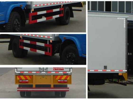 | 整車說明: | 廂體頂部封閉,不可開啟。選裝側(cè)面開門, 防護材料:Q235A碳鋼,連接方式:左右側(cè)面防護與副梁及廂體底面采用焊接連接,后下部防護與車架采用焊接連接,后部防護斷面尺寸(mm):100×50×5,后部防護離地高度(mm):450。隨底盤選裝前面罩,前保險杠,前組合燈具,采用ISB3.9-140E40A,CY4102-CE4B,YC4E140-42發(fā)動機,油耗值分別為(L/100km):27.06,27.70,27.19。該車安裝帶有衛(wèi)星定位功能的行駛記錄儀。安裝帶ABS的底盤,ABS系統(tǒng)控制器型號及生產(chǎn)廠:36BG13-30010/ 東風電子科技股份有限公司汽車制動系統(tǒng)公司。 | ||