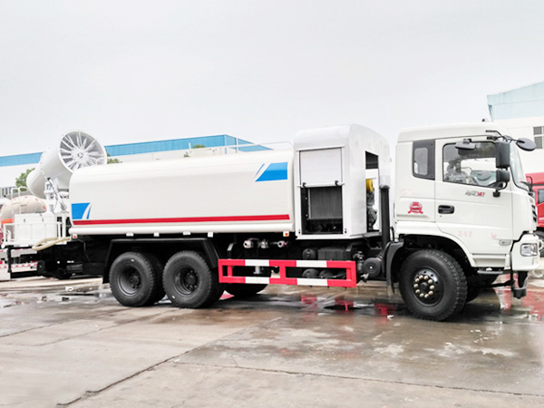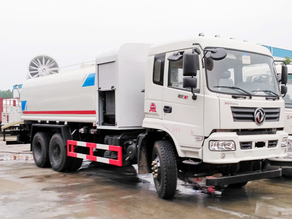 功能配置:帶前部沖洗路面噴灑裝置、后部扇形降塵噴灑裝置,兩側(cè)面噴灑裝置,帶后部工作平臺(tái)、平臺(tái)上安裝綠化灑水炮(炮噴射形狀可調(diào)),可調(diào)直沖狀、大雨、中雨、毛毛雨,可連續(xù)調(diào)節(jié),最大射程可達(dá)28米,垂直吸程6.5米,揚(yáng)程14米,另加裝高效率車載式風(fēng)送噴霧機(jī),噴藥炮霧化效果好,可遠(yuǎn)程噴霧,水平射程達(dá)25米。帶消防接口、自流閥,可自吸自排。