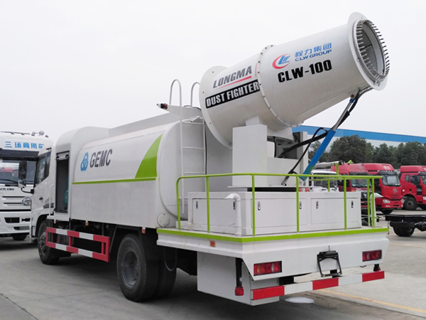 抑塵車同時(shí)具備灑水車功能,在噴灑作業(yè)時(shí)可實(shí)現(xiàn)360度旋轉(zhuǎn),后平臺(tái)高炮可同時(shí)進(jìn)行旋轉(zhuǎn),并可電子遙控操作。